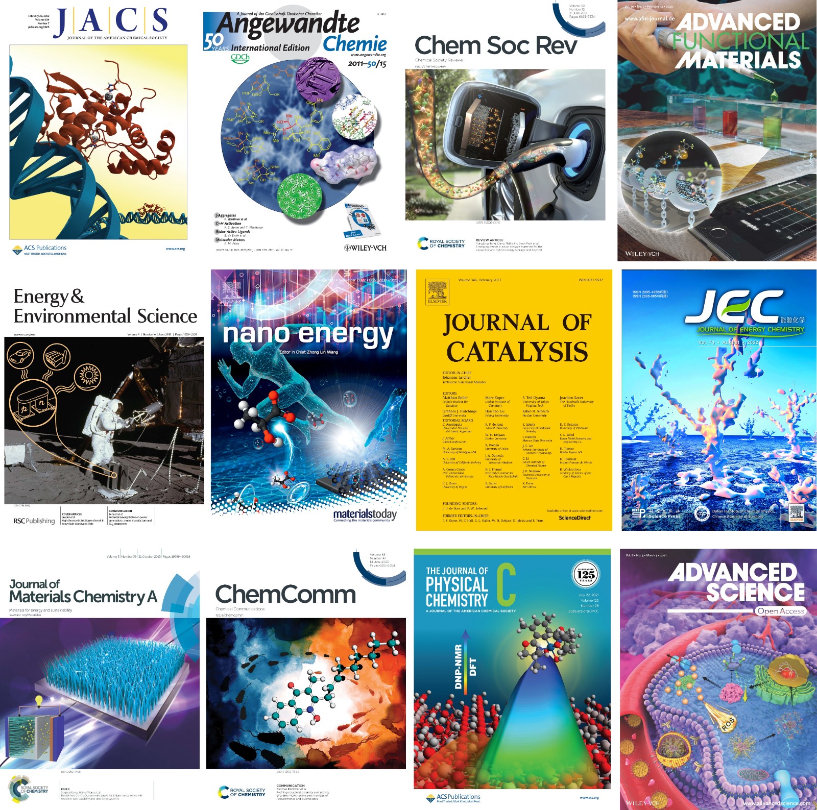 经过多年发展,团队已经形成了一支专业与年龄结构合理的学术梯队,现有固定人员8人(图1),研究生20余人,包括教授3人,副教授3人,讲师2人,其中博士研究生导师2人,硕士研究生导师5人。培养了河北省高端人才、省管优秀专家、石家庄市管拔尖人才、省杰青、省优秀学位论文指导教师、省优青、省青年拔尖人才、“三三三”人才工程各层次人才,省高校百名优秀创新人才等具有省级称号的青年科技人才10余人次(图2)。近几年,团队成员主持国家自然科学基金、河北省自然科学基金、企业横向课题等多项科技项目,以第一/通信作者身份在J. Am. Chem. Soc., Angew. Chem. Int. Ed., Chem. Soc. Rev., Energy Environ. Sci., Adv. Funct. Mater., Nano Energy, Adv. Sci., J. Energy Chem., J. Catal.等SCI期刊发表学术论文100余篇(图3),出版学术专著4部,授权专利20余件(转让1件)。