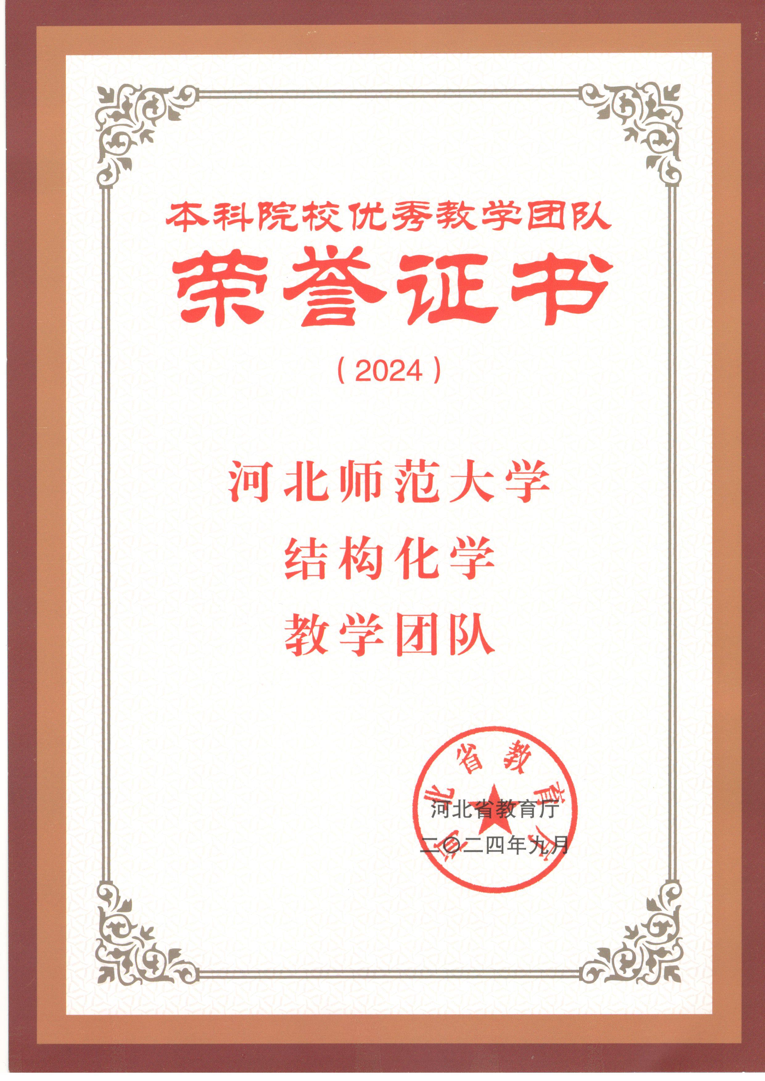 今年会官网结构化学教学团队获评本科院校优秀教学团队
