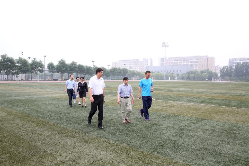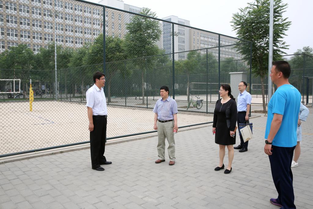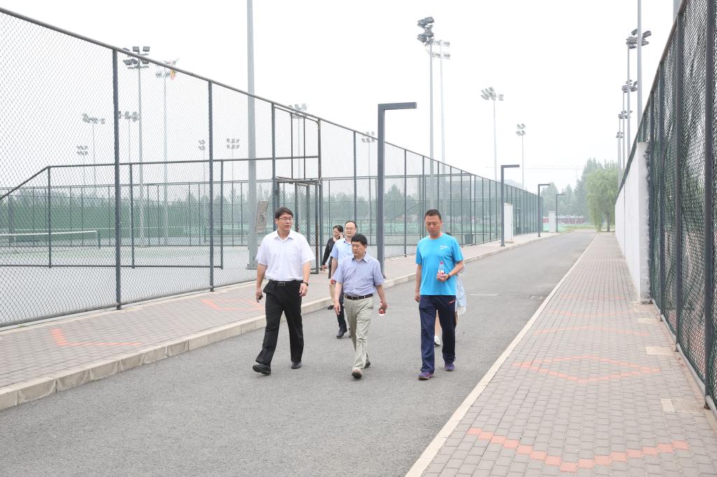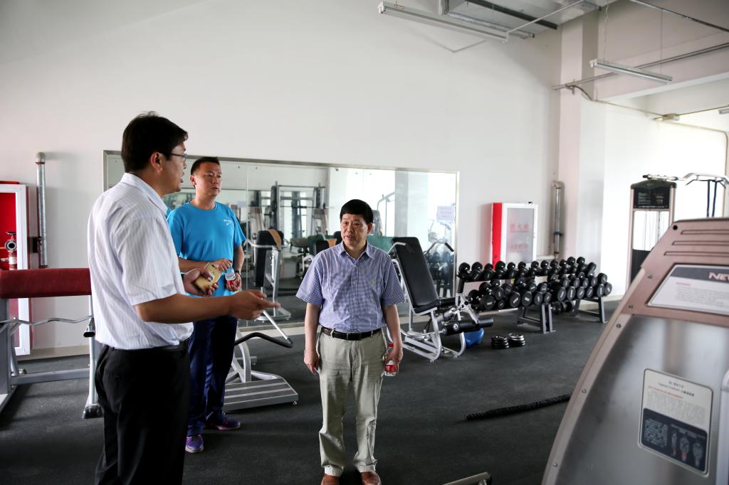 整个走访路线涵盖了沙河校区的体育设施,包括体育馆、篮球场、沙排场地、拓展场地、网球场、排球场、田径场、力量房和跑廊等,刘俊教授对我校室外体育场地设施的现状表示肯定,他边看边提问题,还询问了我校公共体育课教学、群众体育活动在提升学生体质方面是如何发挥作用的,张本家副院长逐一进行了回答。刘教授指出,学校体育要注重提升学生身体素质,引导学生至少掌握一项体育运动,要鼓励并发展学生的运动兴趣。同时,他也指出我校室内体育场馆设施严重不足,甚至指出力量房空间不够,乒乓球区域未设置专用灯光等细节问题,希望体育场地设施能够更好地为学生、教师服务。