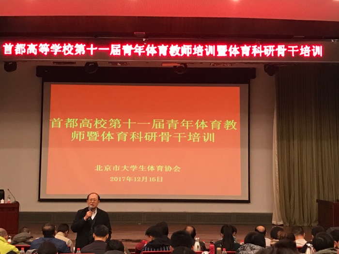 首都高等学校第青年体育教师培训暨体育科研骨干培训是由北京市大学生体育协会主办,目前已经成功举办十届。此培训班旨在为了更好地培养和激励首都高等学校青年体育教师,传递改革和发展的信息,搭建好青年教师的交流平台。同时,为提高首都高校体育科研水平,为明年首都高校十九届科报会和十四届全国学生运动会科报会做好准备。